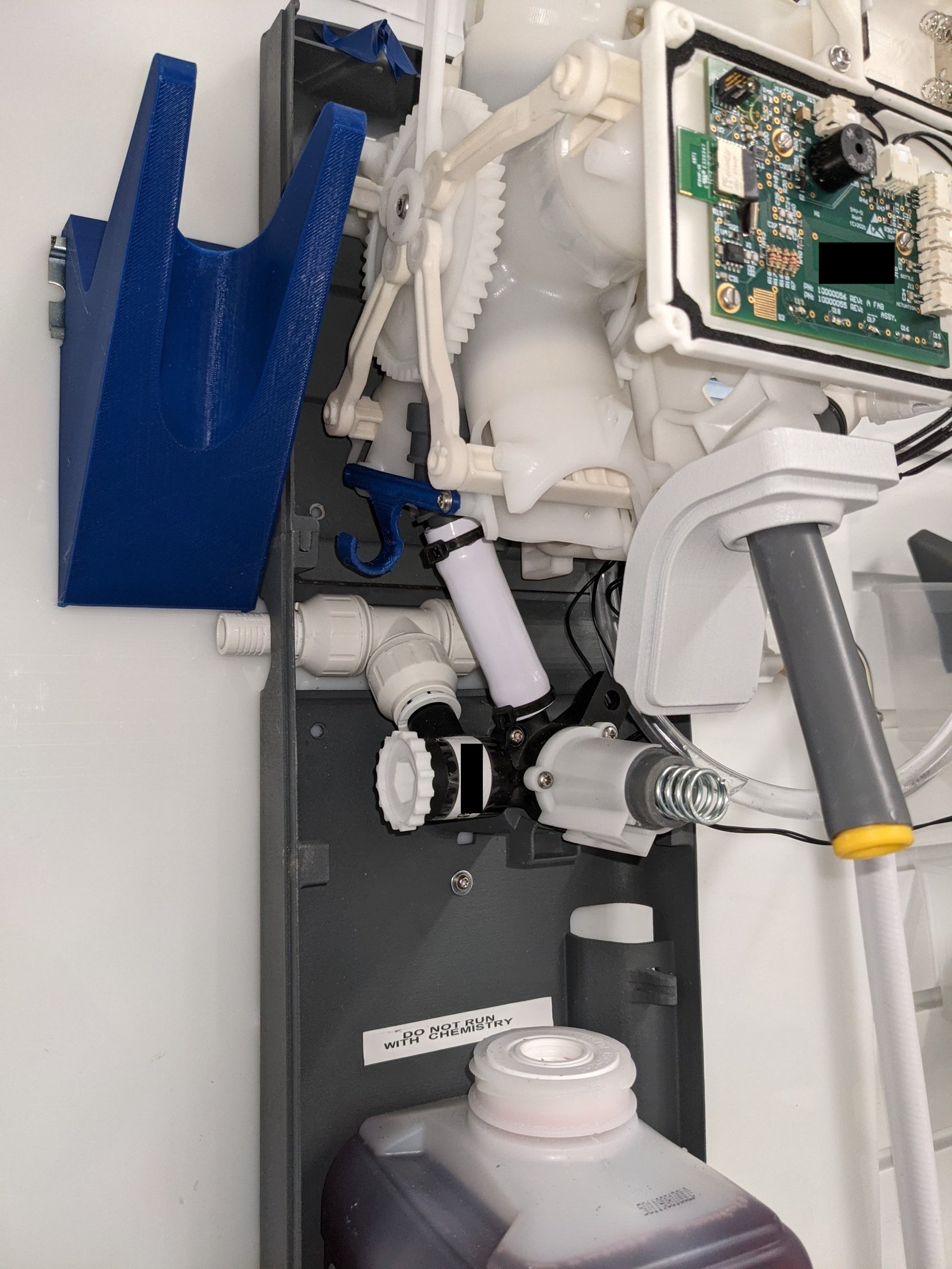 New dispenser needs exterior shell, door, valving, PCB housing, drip mitigation.
