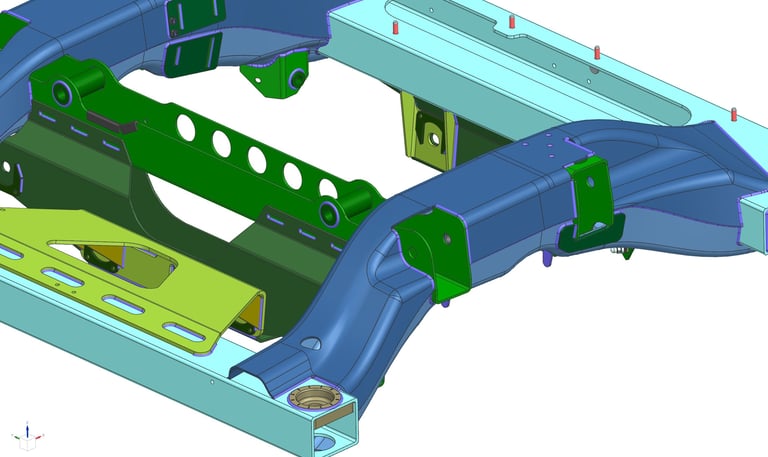 Created highly complex front & rear vehicle subframes (stamped steel weldments & fabrications) and motor mounting system (press-brake steel weldments), sized and analyzed heavily loaded bolted joints.